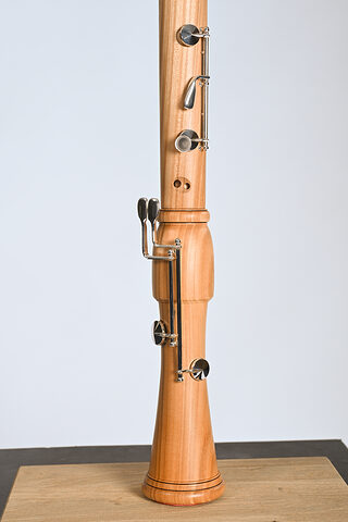Diese Bassblockflöte sticht durch ihre Ausrichtung auf ergonomisches Design und Spielbarkeit heraus. Sie wurde speziell für Menschen mit kleinen Händen oder eingeschränkter Beweglichkeit entwickelt. Durch einen geneigten Kopf, angepasste Klappenmechanik und individuell verstellbaren Daumenhaken verkürzen sich die Griffwege und verbessern Haltung und Spielkomfort. Kirschholz als leichter Klangträger und handgefertigte Details wie Griffdeckel aus Ebenholz sowie eine versilberte Mechanik unterstreichen die gestalterische und funktionale Qualität des Instruments. Erstmals wird ein von Meisterhand geschaffenes Holzblasinstrument ausgezeichnet.